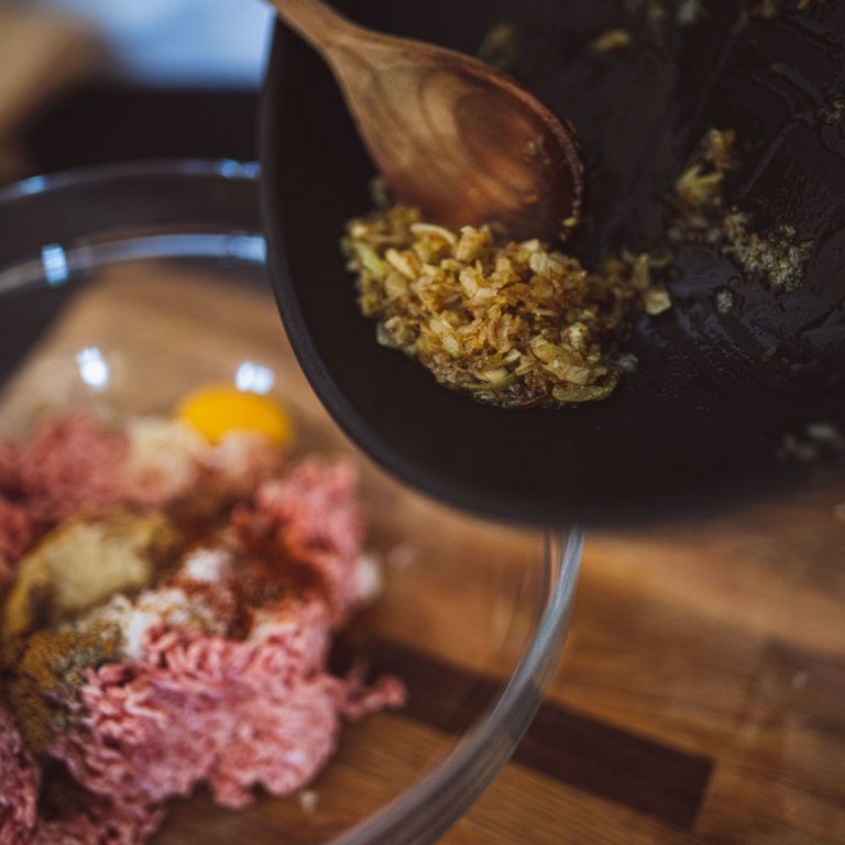 - 2. Cibuli nakrájíme najemno a orestujeme do zlatova na sádle a necháme vychladnout.