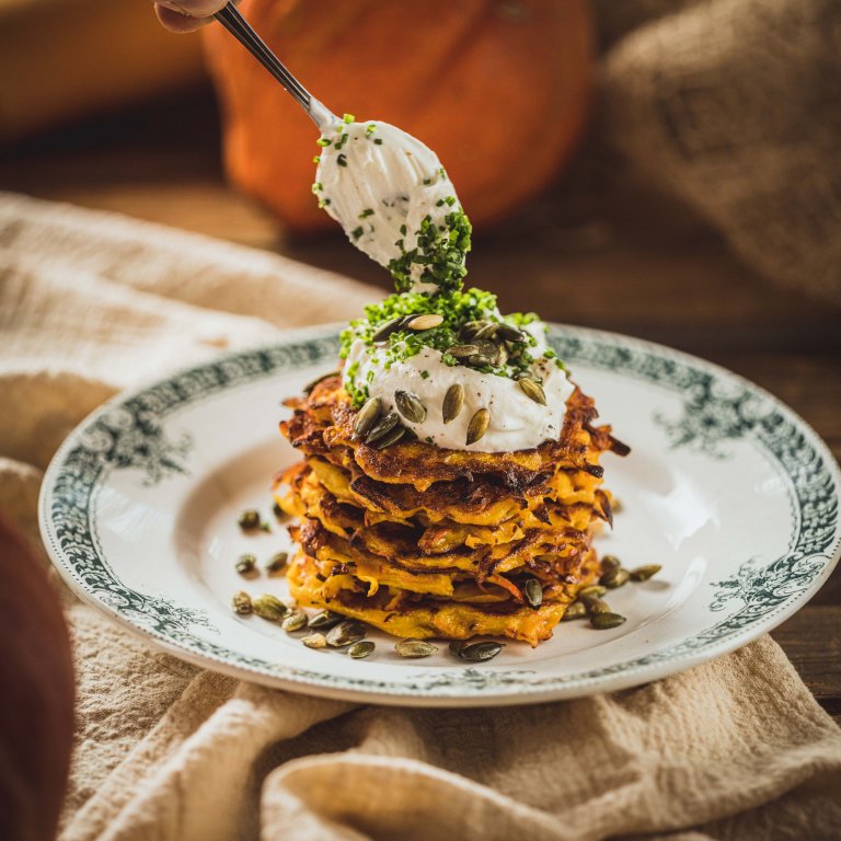 S barvami podzimu se jednoznačně ztotožňuje dýně. Její nádherně oranžová barva je lákavá nejen pro oči, ale i pro naše chuťové pohárky. Receptů na polévku z této nádherné zeleniny je mnoho, proto zařazujeme inspiraci na dýňové placky. Základem je dýně hokaido, kterou není třeba loupat. Nemá skoro žádné kalorie, za to obsahuje plno vitaminů a minerálů. A jak docílíte nejlepší chuti pokrmu? Pokud pečlivě zvolíte suroviny. Možná máte své oblíbené, ale pokud váháte, kvalitu potravin signalizují také malá loga na obalu výrobku, jakými jsou např. Klasa nebo BIO.