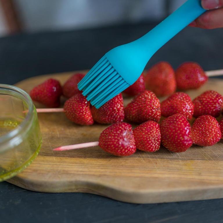- 4. Špízy položte na rozehřátý gril a za občasného otáčení grilujte asi 5 minut (dle velikosti jahod).