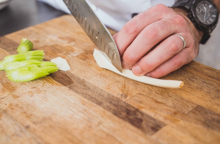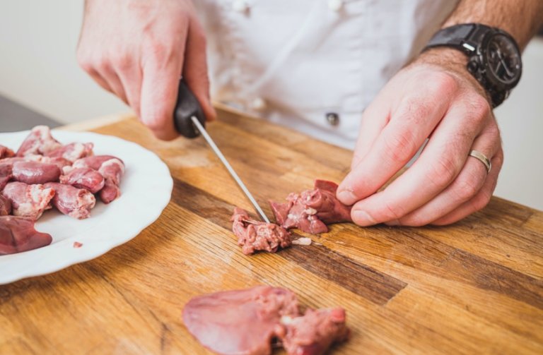 - 2. Droby očistíme, uvaříme do měkka v osolené vodě a nakrájíme na menší kousky.
