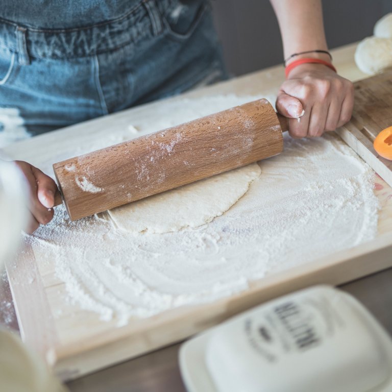 - 4. Odpočinuté těsto vyklopte na pomoučenou plochu a vyválejte do válečků s průměrem cca 6 cm.