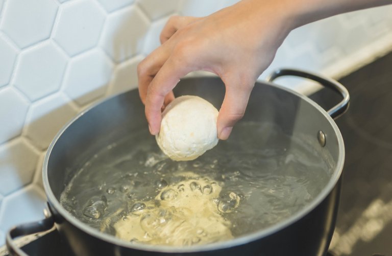 - 6. Knedlíky opatrně vložte do vroucí vody a vařte asi 5 minut.