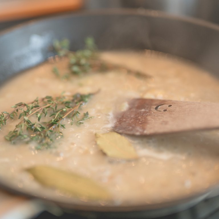 - 6. Asi po 10-15 min vyjměte tymián a bobkový list a vmíchejte čočku.