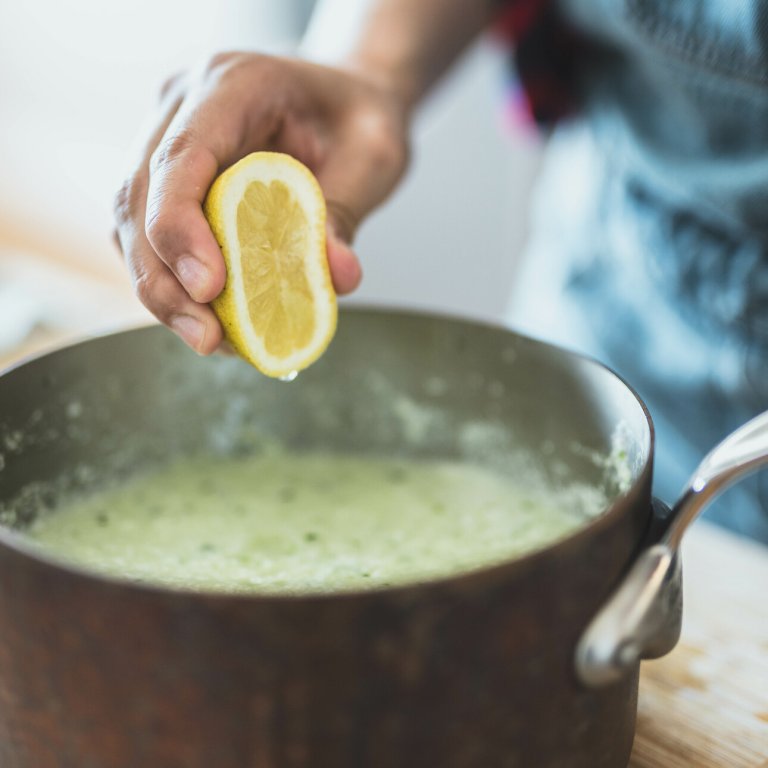 - 4. Základ polévky ochuťte pepřem a šťávou z citronu dle chuti. Zatím nesolte!
