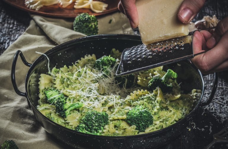 - 5. Omáčku promíchejte s těstovinami a podávejte se zbylými kousky brokolice a strouhaným sýrem.