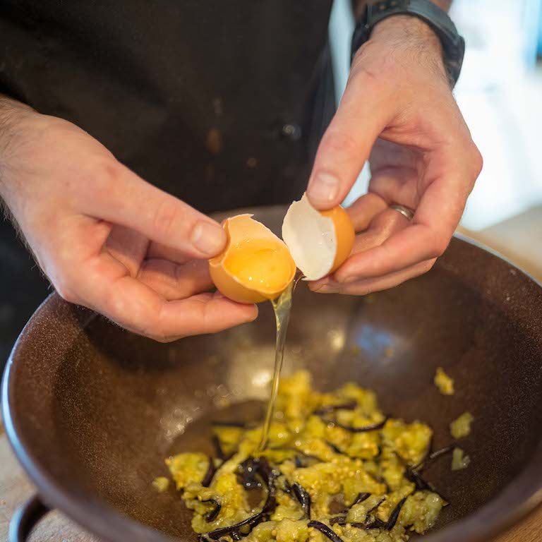 - 9. Lilkové placičky: Lilky rozmačkáme, přidáme utřený česnek, nasekanou listovou petržel, vejce, podle potřeby mouku.